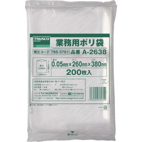 TRUSCO 小型ポリ袋 縦380X横260Xt0.05 200枚入 透明 A2638