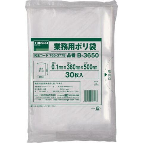TRUSCO 厚手ポリ袋 縦500X横360Xt0.1 30枚入 透明 B3650