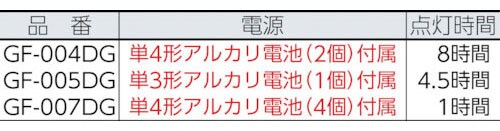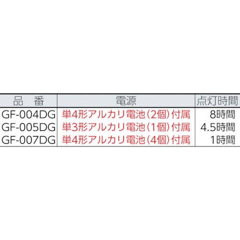 ・明るさ(lm):18・外径(mm):16.2・全長(mm):142・電源(V):単4形アルカリ電池(2個)付属・最大点灯時間(h):8・保護等級:IP54・電源:単4形アルカリ電池(2個)付属