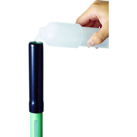 ●ハンドル内に水や洗剤を注入でき、トップボタンを押すことで液剤を吐出しながら水拭き清掃ができます。