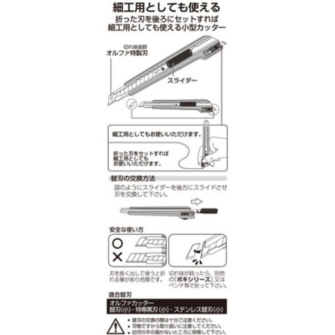 ●折った刃を後ろにセットすれば、細工切り用としても使える小型カッターです。