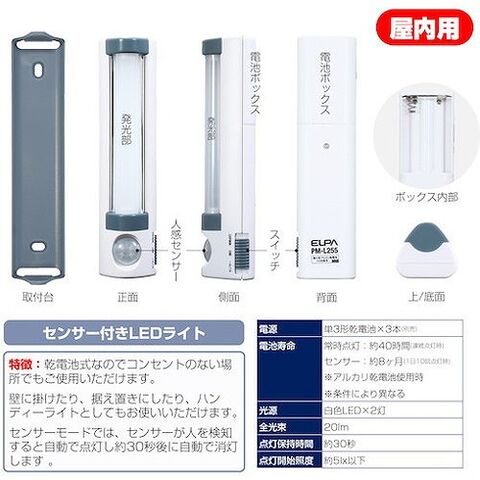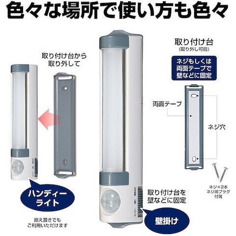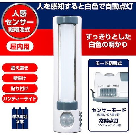 ●電池寿命:【センサーモード時】約8ヶ月(1日10回点灯時)【常時点灯モード時】約40時間(連続点灯時)※電池の性能により異なります