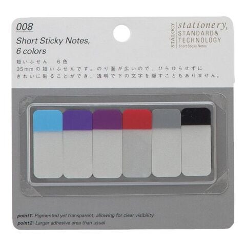 ●6色入のひらひらしにくい、見出しに便利なフィルム素材のふせんです