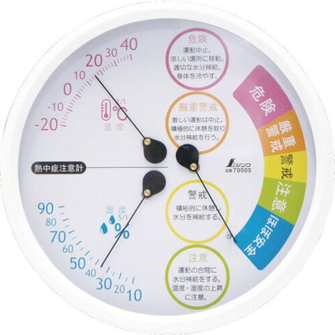 シンワ 温湿度計 F-3L2 熱中症注意丸型15cm 70505