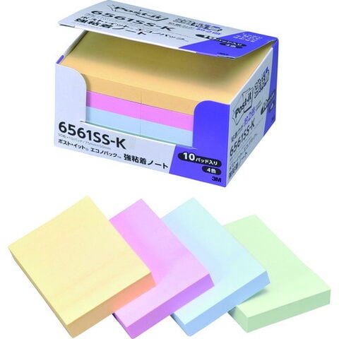 3M ポスト イット 強粘着 75X50mm 90枚X10パッド 4色混色