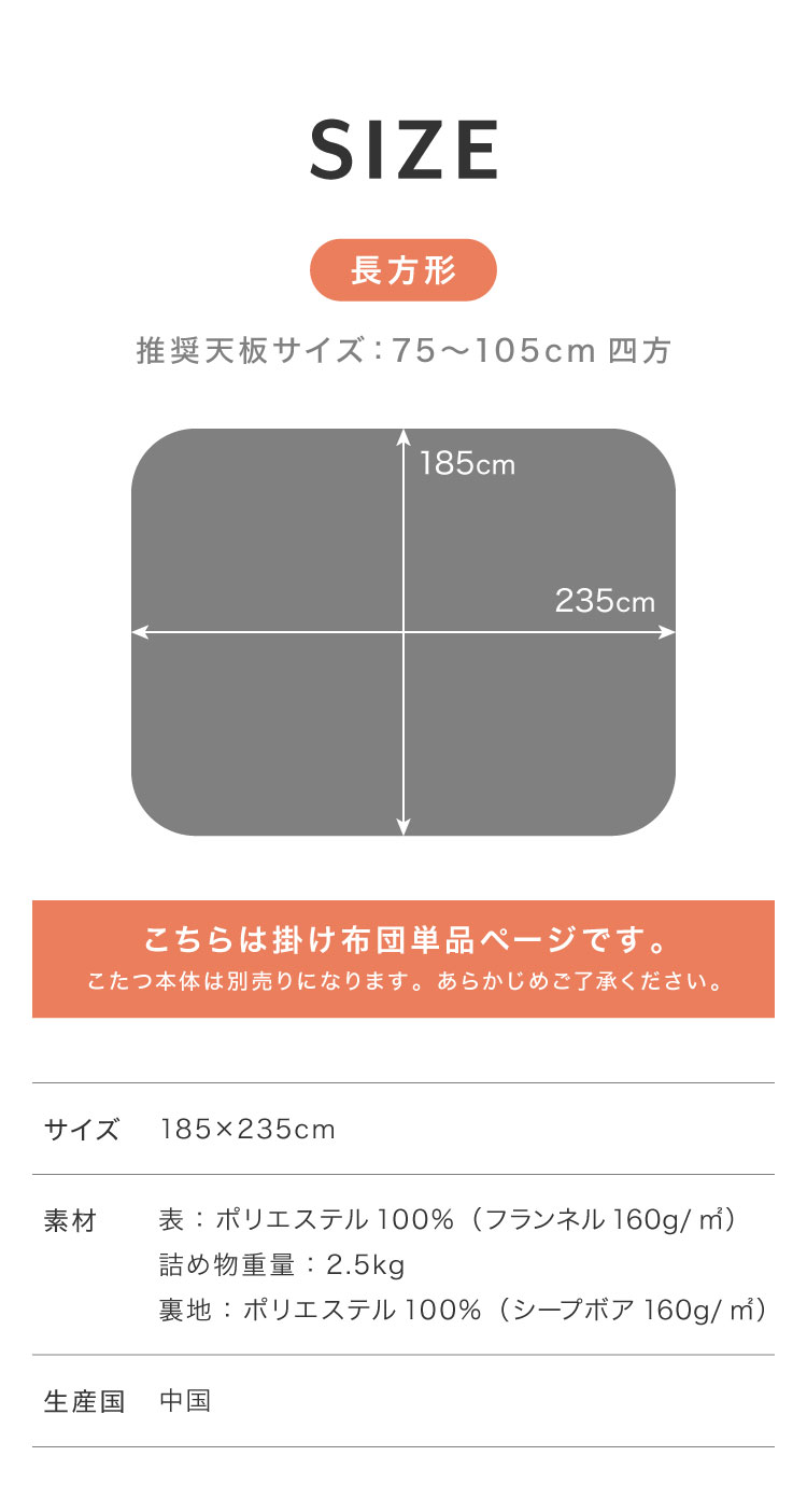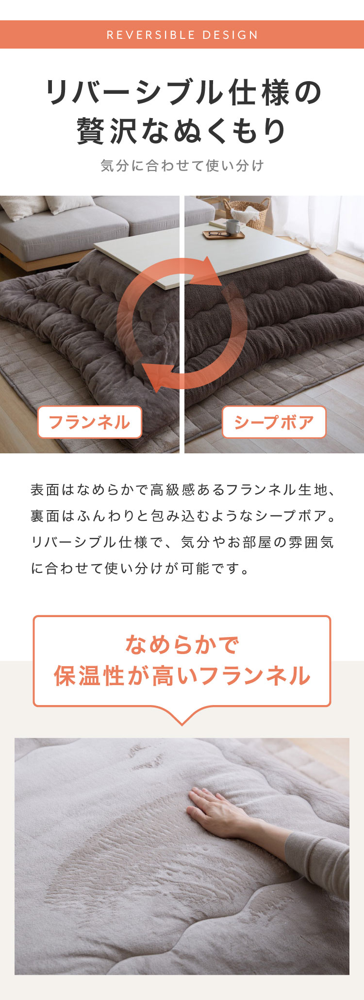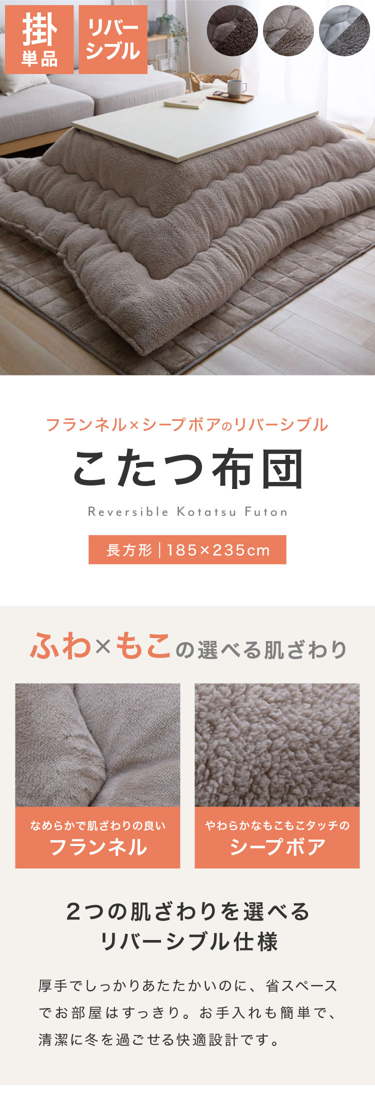 フランネル×シープボアこたつ布団 選べるサイズ 長方形 185×235cm リバーシブル仕様 省スペース 洗える 厚手 こたつ掛け布団 リバーシブル フランネル シープボア 節電【送料無料】