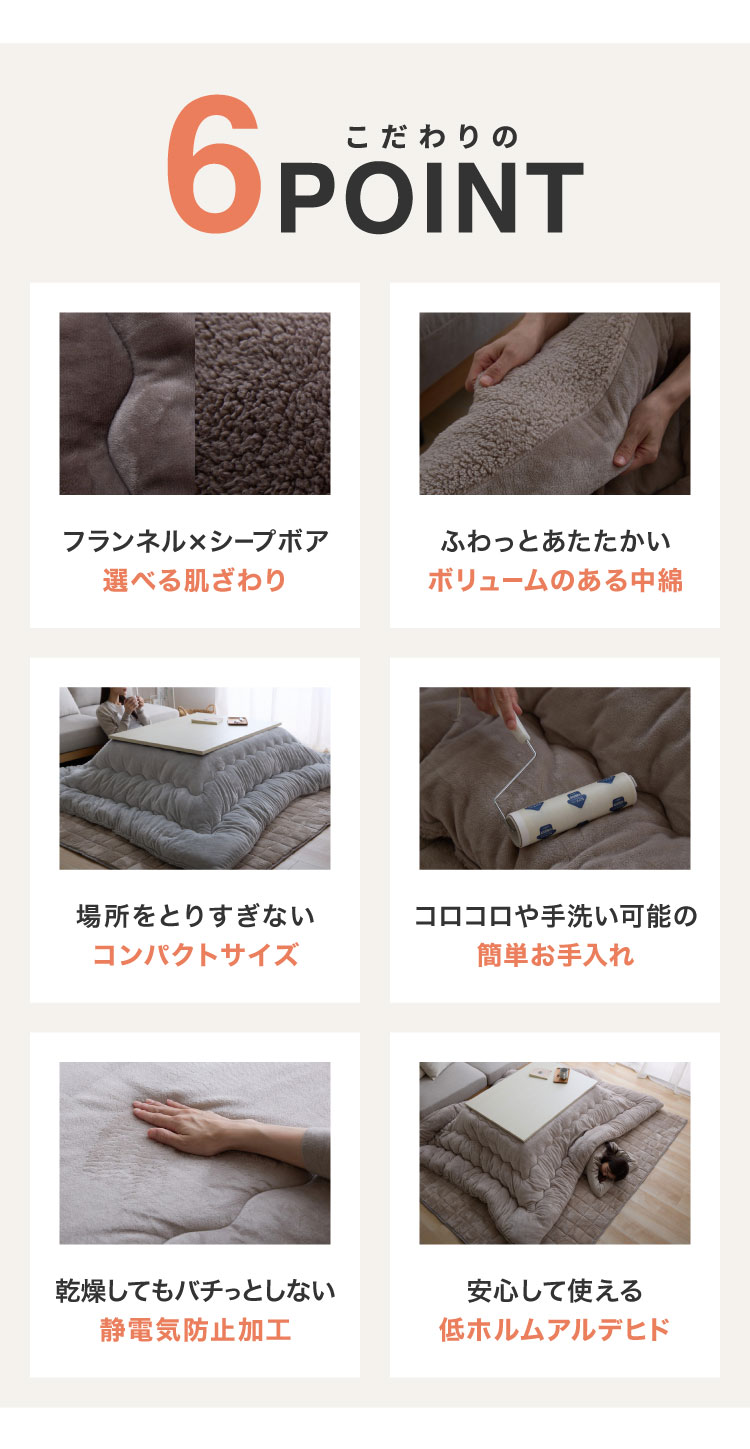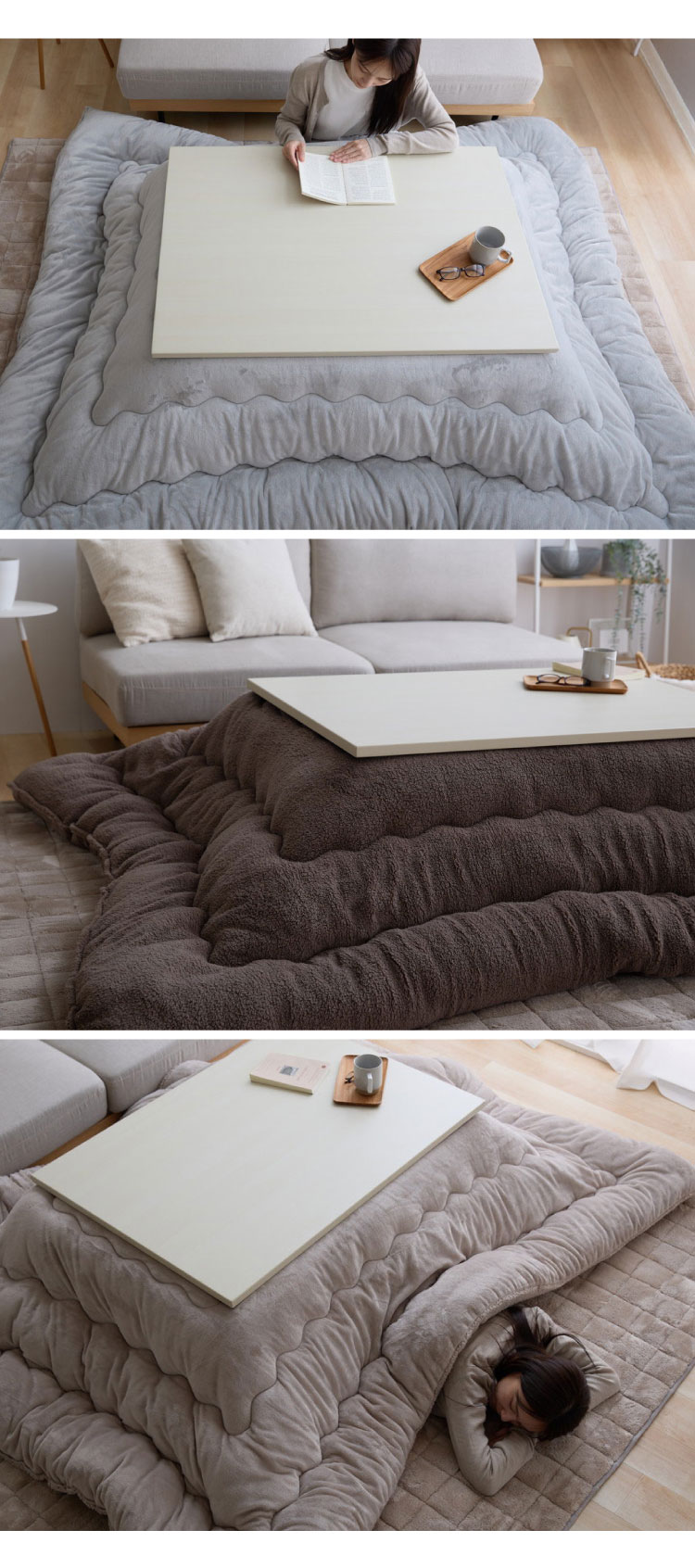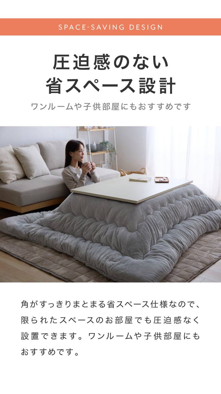 省スペースながらしっかり暖かい、冬のリビングを快適にするこたつ掛け布団です。