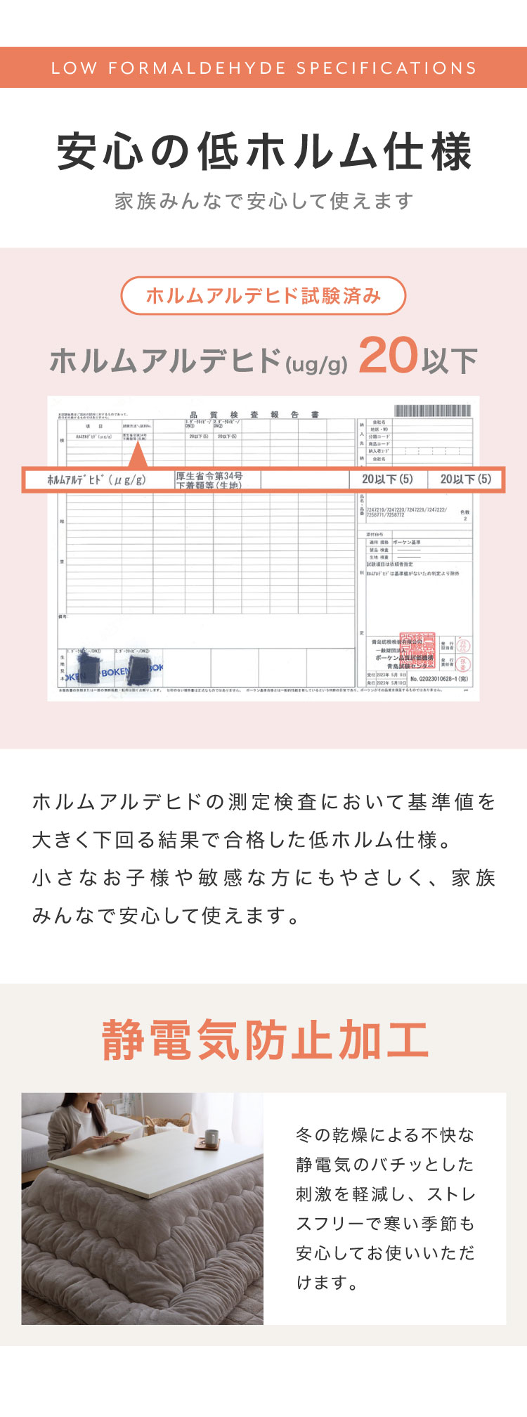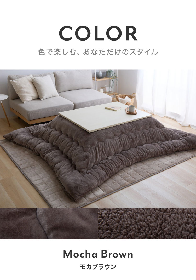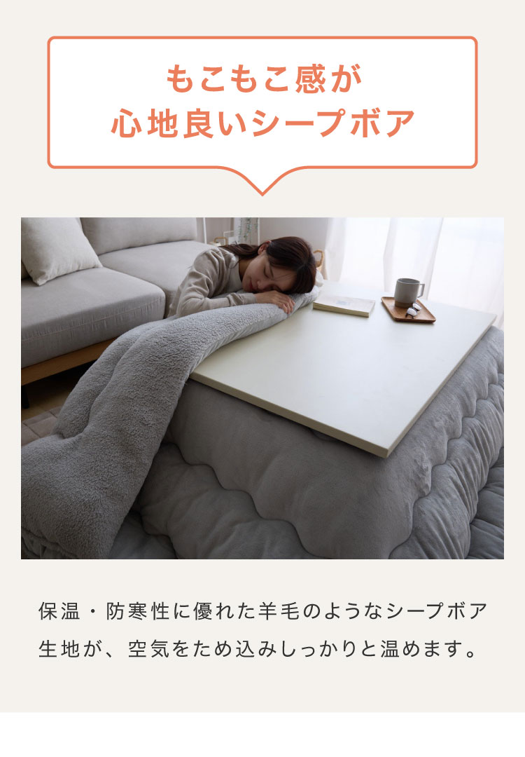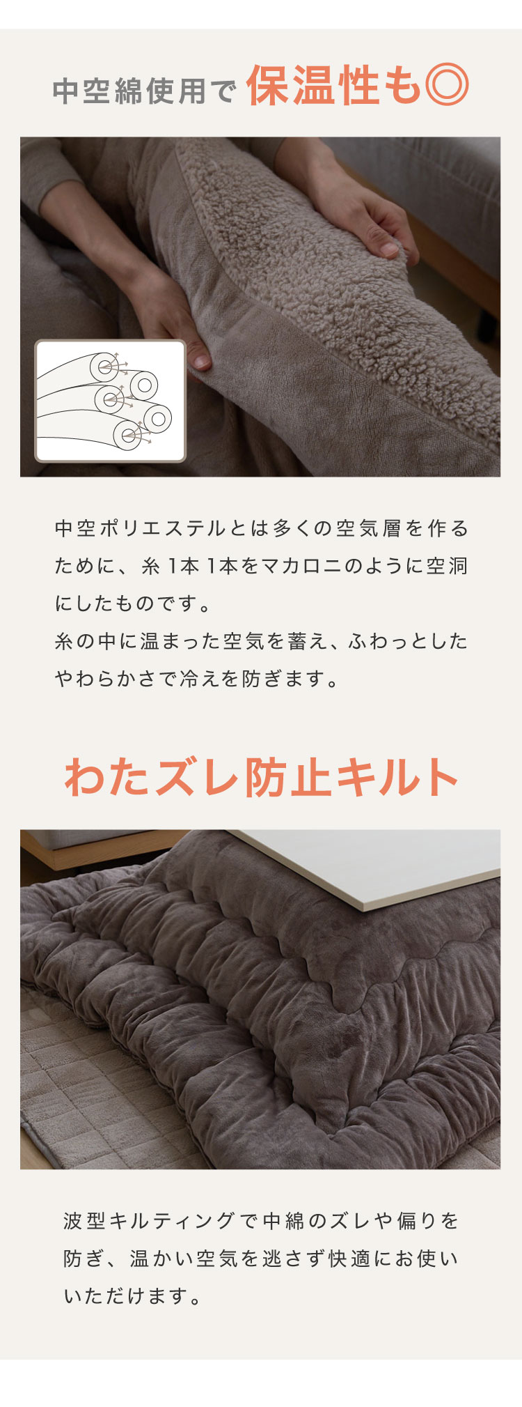 省スペースながらしっかり暖かい、冬のリビングを快適にするこたつ掛け布団です。
