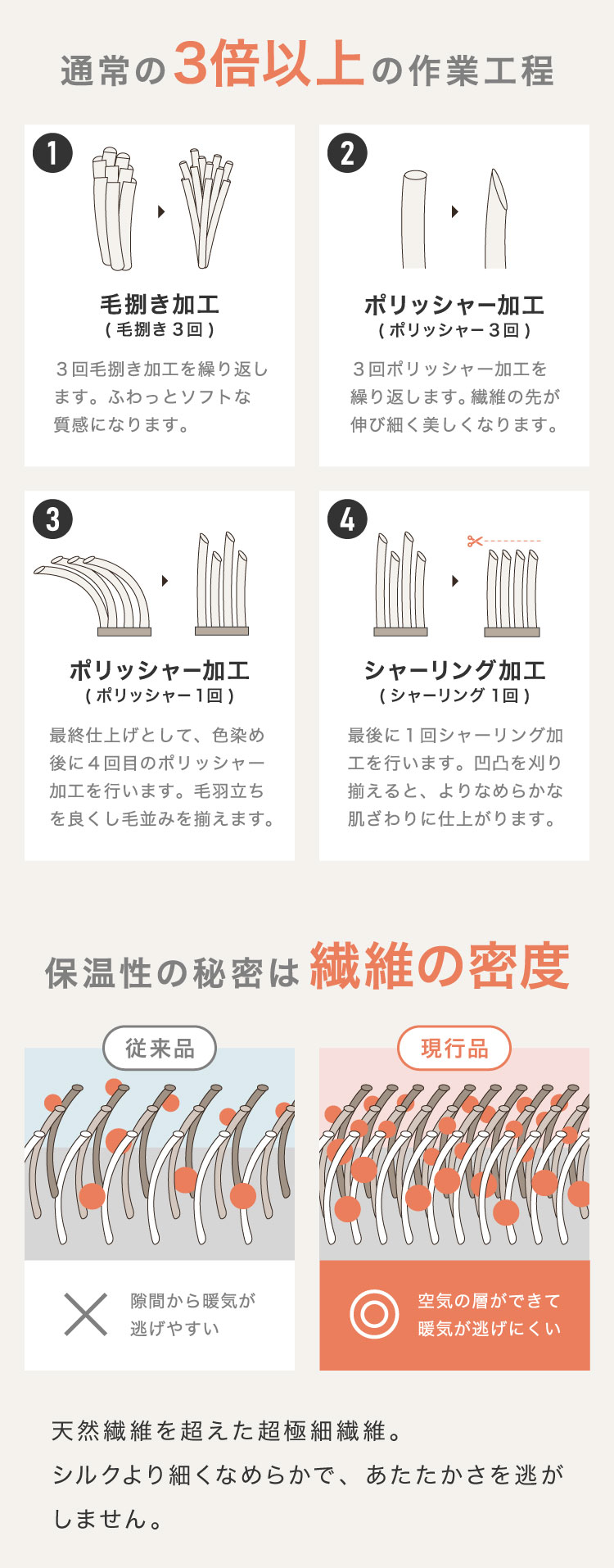 表面はなめらかで高級感あるフランネル生地(160g/平方メートル)、裏面はふんわりと包み込むようなシープボア(160g/平方メートル)。