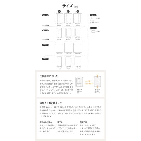 カサカサがしにくいので快適におやすみいただけます。また高密度に盛り上げているので羽根の飛び出しを防ぎます。