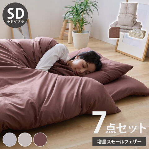 羽根布団7点セット セミダブル 増量スモールフェザー 羽根布団 吸湿 放湿 弾力性 軽量 通気性 ウレタン 中空わた敷布団 布団カバー3点セット付きカバー丸洗い可能 収納袋付き 圧縮梱包【送料無料】