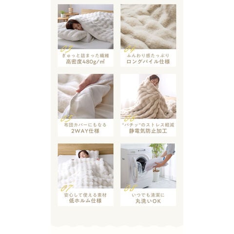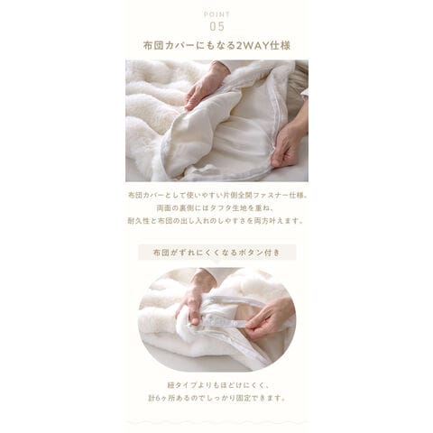 ふわふわもこもこの毛布が掛け布団カバーとしても使えて、毎日の睡眠をもっと快適にします。