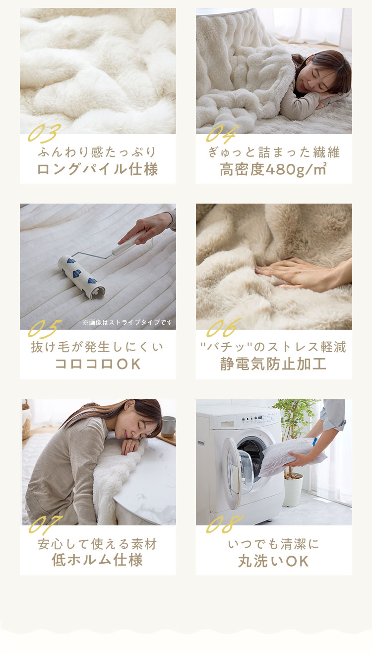 表地には密度たっぷりのもこもこ生地(480g/平方メートル)を使用。しっかりとした厚みと弾力があり、触れるだけで心も体もほっと温まります。可愛らしい質感は韓国インテリアとの相性も抜群です。