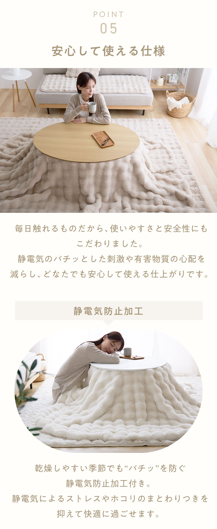 やさしく包まれる、ふわふわ・もこもこの肌ざわり。