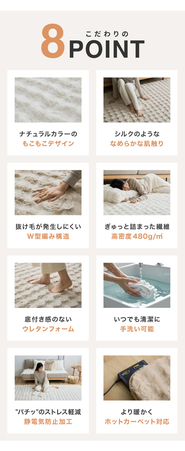 mocone もこもこラグ 長方形 180×240cm ラグ カーペット おしゃれ ラグマット 北欧 かわいい 絨毯 洗える もこもこ ぽこぽこ ふわふわ ラグ 冬用 冬 あったか 暖かい リビングマット【送料無料】のレビュー