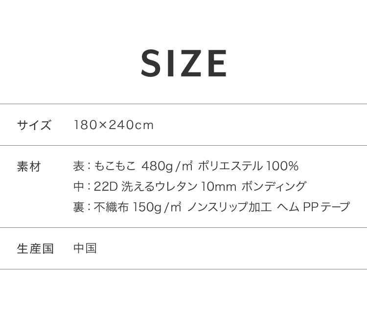 表:もこもこ 480g/平方メートル ポリエステル100%
