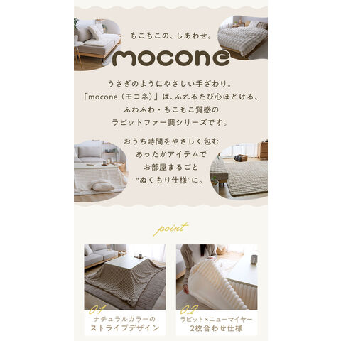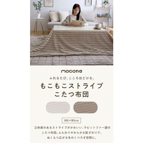 mocone もこもこストライプこたつ布団 正方形 185×185cm こたつ布団 モコモコ ストライプ ふわふわ とろとろ ラビットファー 炬燵 コタツ 冬用 節電 あったか 暖かい かわいい 韓国 おしゃれ【送料無料】