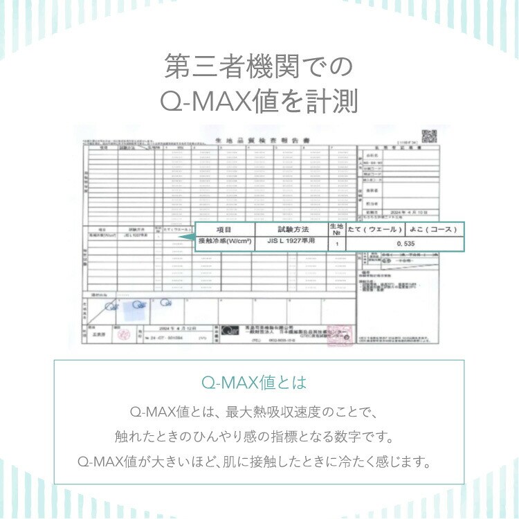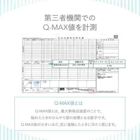 Q-MAX値とは最大熱吸収速度のことで、触れたときのひんやり感の指標となる数字です。