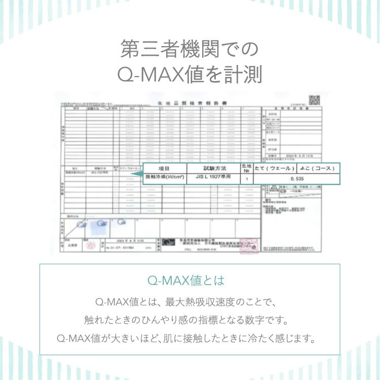 Q-MAX値が大きいほど肌に接触した時に冷たく感じます。