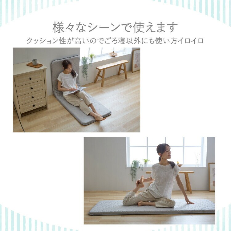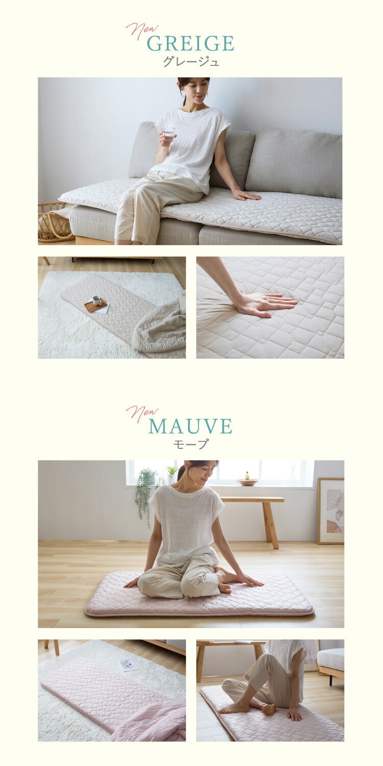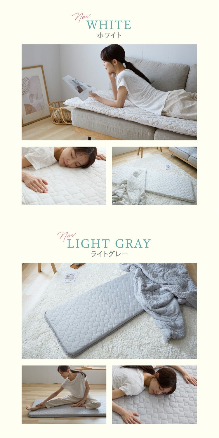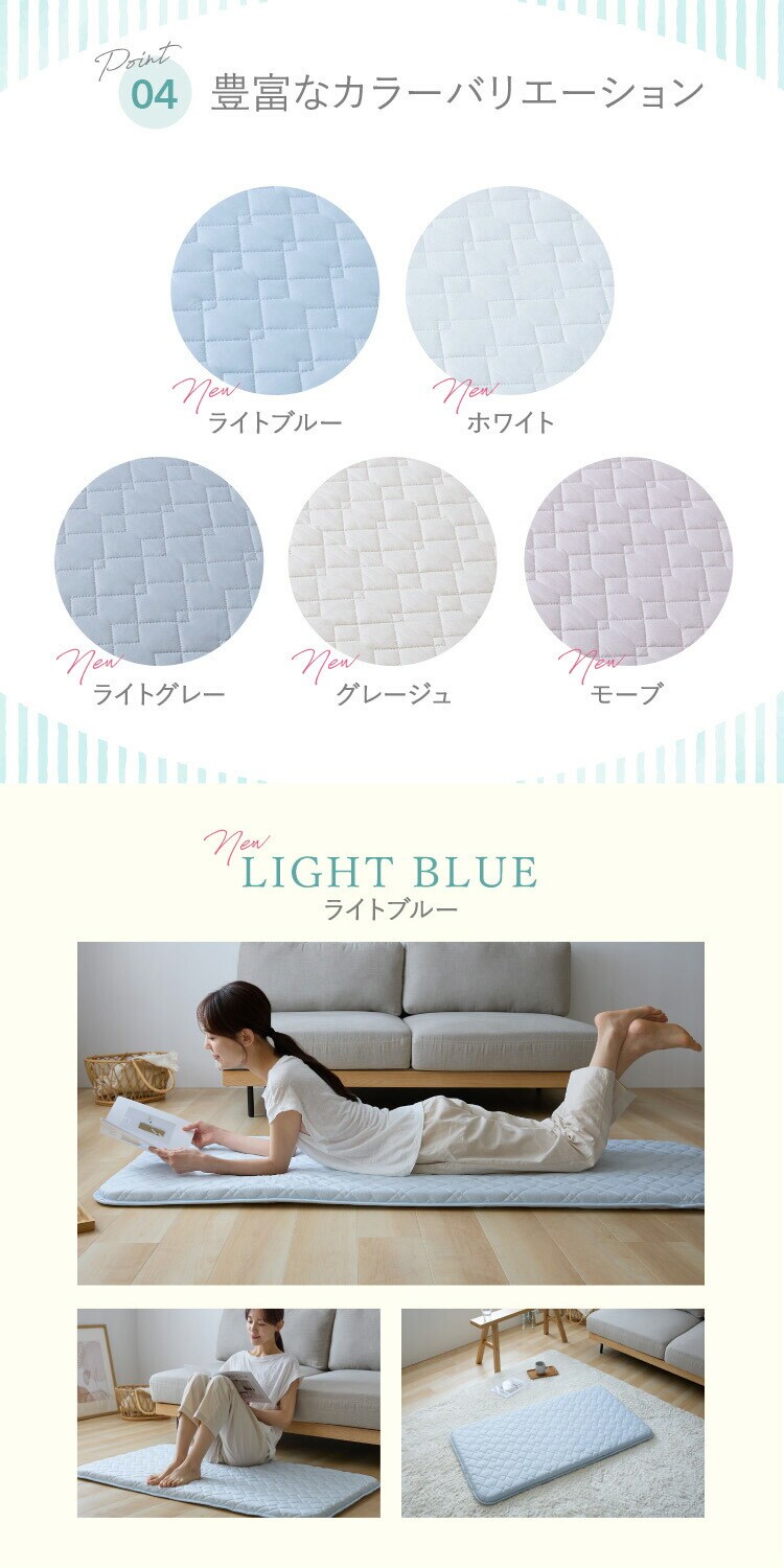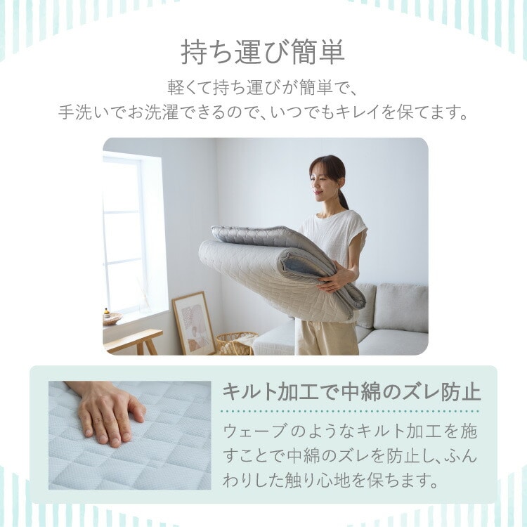 中綿:上下/ポリエステル100%(抗菌防臭わた30%、レギュラー綿70% 100g/m2)芯材:ウレタンフォーム(20D以上 3cm厚)