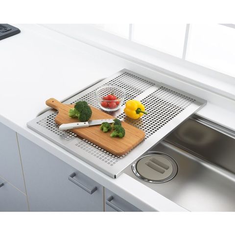 ヨシカワ 日本製 燕三条 シンクに渡せる 頑丈スライドプレート 伸縮式 作業スペース拡張 シンク上 作業台 調理台 奥行57 幅23~42 ステンレス Yoshikawa【送料無料】