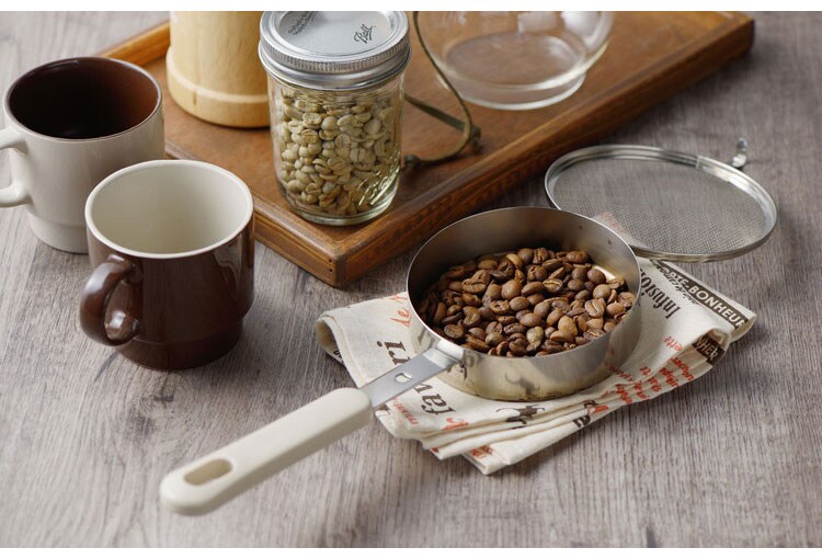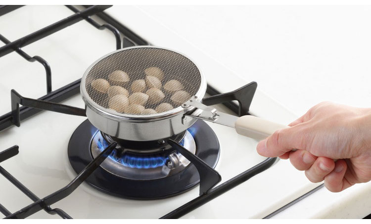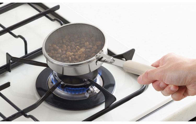 ごまや銀杏はもちろん、コーヒ豆やお茶を煎る時にも使えるステンレス製煎りパン。