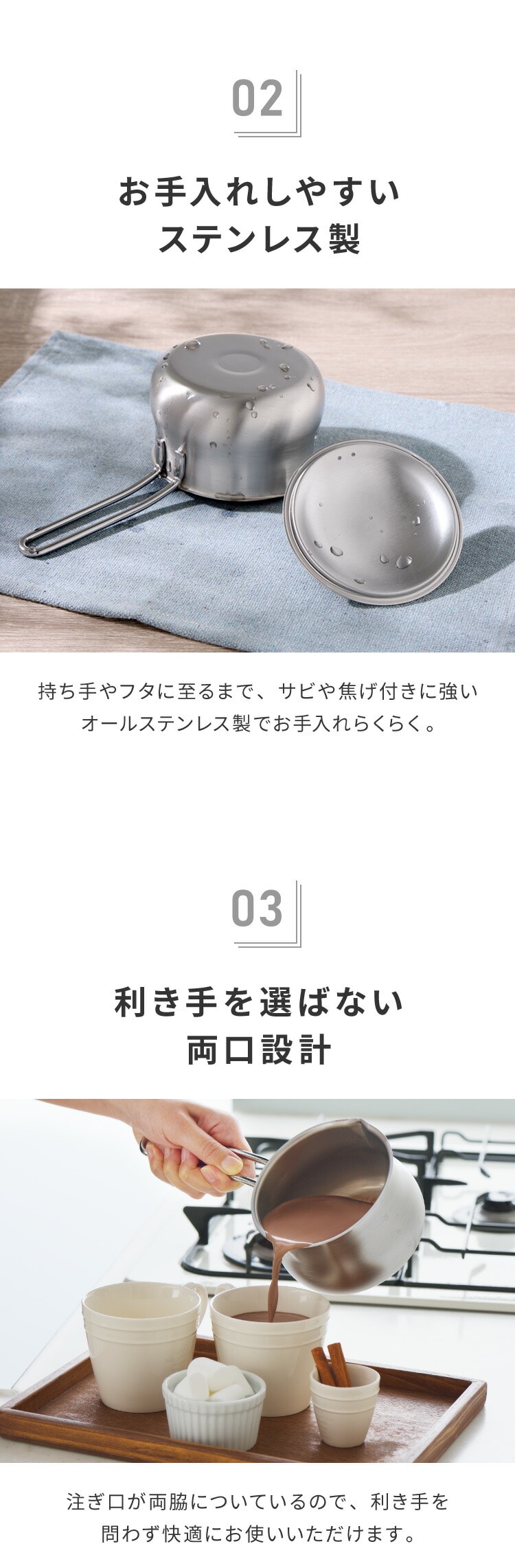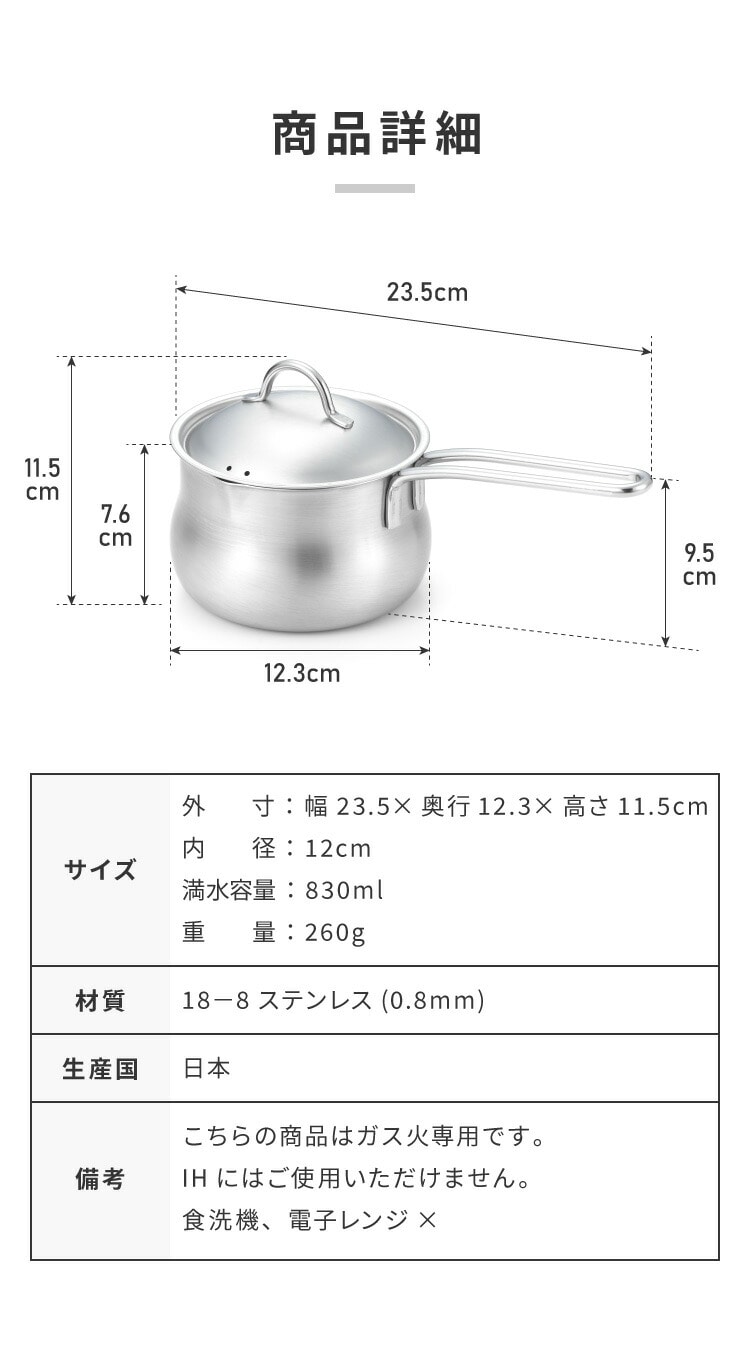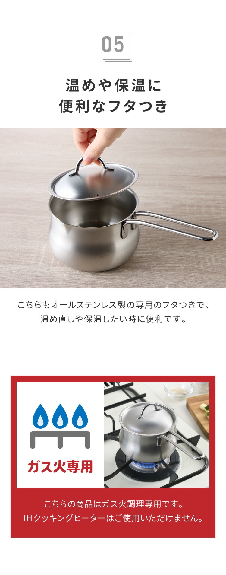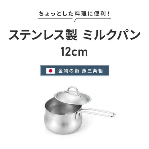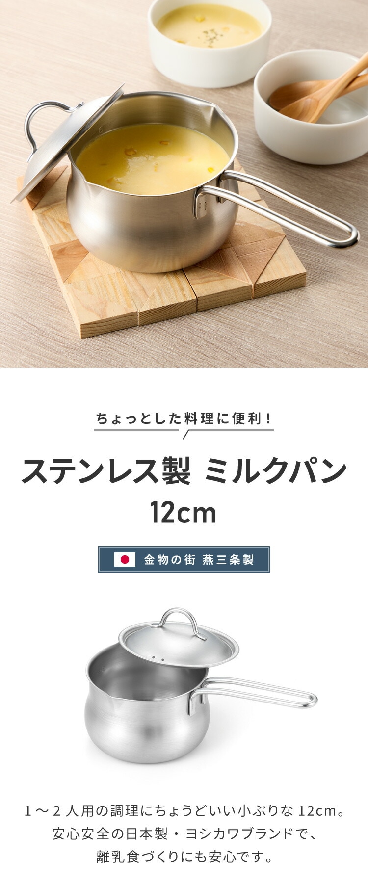 ヨシカワ 日本製 ミルクパン 蓋付き ステンレス 12cm 両口 燕三条 オールステンレス製 フタ付き 目盛付き ガス火 片手鍋 小鍋 小さい 取っ手 かわいい 可愛い Yoshikawa【送料無料】