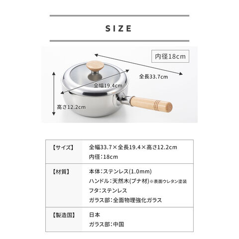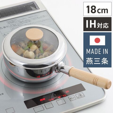 ヨシカワ 日本製 片手鍋 18cm 見える!木柄ソースパン ガス火・IH対応 鍋 雪平鍋 燕三条 ステンレス製 ソースパン ガラス蓋 フタ 目盛 両口 注ぎ口 行平鍋 Yoshikawa【送料無料】