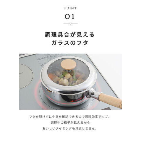 ヨシカワ 日本製 片手鍋 18cm 見える!木柄ソースパン ガス火・IH対応 鍋 雪平鍋 燕三条 ステンレス製 ソースパン ガラス蓋 フタ 目盛 両口 注ぎ口 行平鍋 Yoshikawa【送料無料】のレビュー