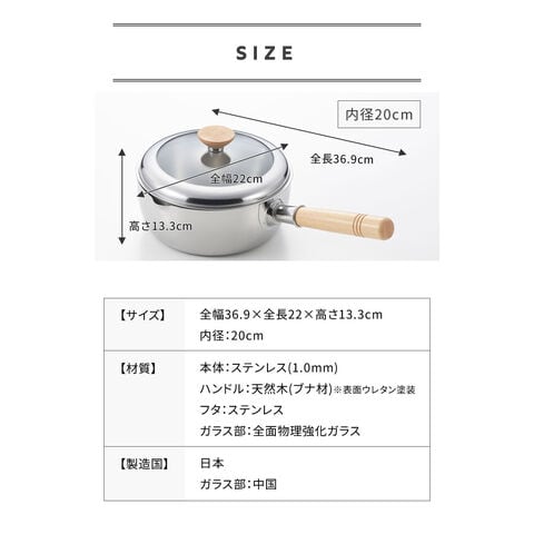 ヨシカワ 日本製 片手鍋 20cm 見える!木柄ソースパン ガス火・IH対応 鍋 雪平鍋 燕三条 ステンレス製 ソースパン ガラス蓋 フタ 目盛 両口 注ぎ口 行平鍋 Yoshikawa【送料無料】