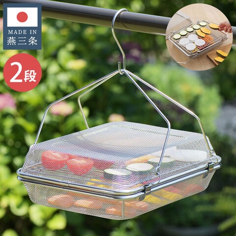 日本製 燕三条 干しかご 2段 角型 ステンレス製 お手入れ簡単 干しアミ 干しカゴ ドライフルーツ 干物 野菜 果物 乾燥 天日干し 干し網 バスケット ざる ザル フードドライヤー 2段式【送料無料】