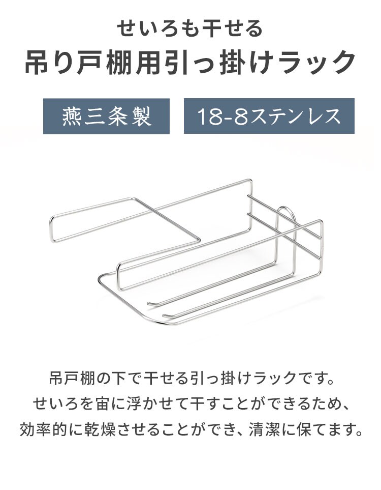 【せいろが干せる】 ヨシカワ 日本製 燕三条 せいろも干せる吊り戸棚用引っ掛けラック 吊戸棚 ラック フック 戸棚下 多機能ラック せいろ 乾燥 キッチン収納 収納 棚下 布巾 ラップ Yoshikawa【送料無料】