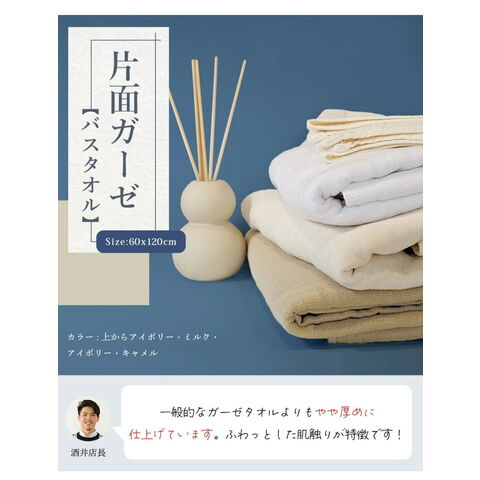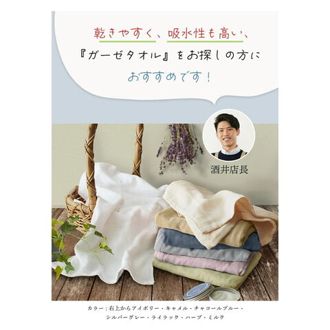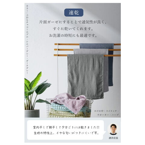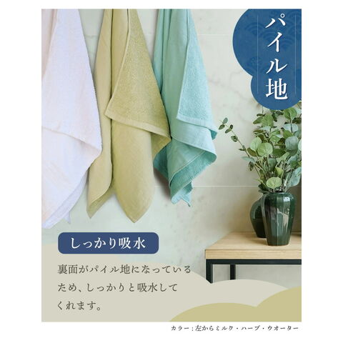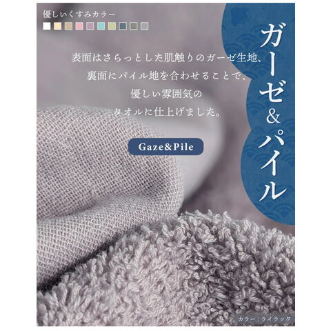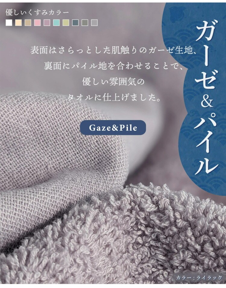 表ガーゼ裏パイルになっており、一般的なガーゼタオルよりも吸水性が高い。