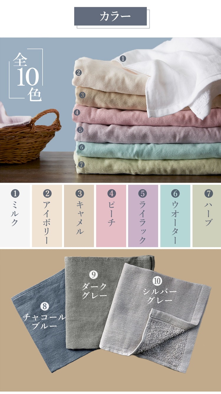 表ガーゼ裏パイルになっており、一般的なガーゼタオルよりも吸水性が高い。