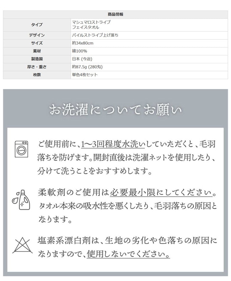 マシュマロストライプフェイスタオル 今治タオル フェイスタオル 4枚 セット 中厚 ベビー 赤ちゃん かわいい 34×80cm 綿100% 日本製 今治タオル 無地 吸水 マシュマロストライプ【送料無料】