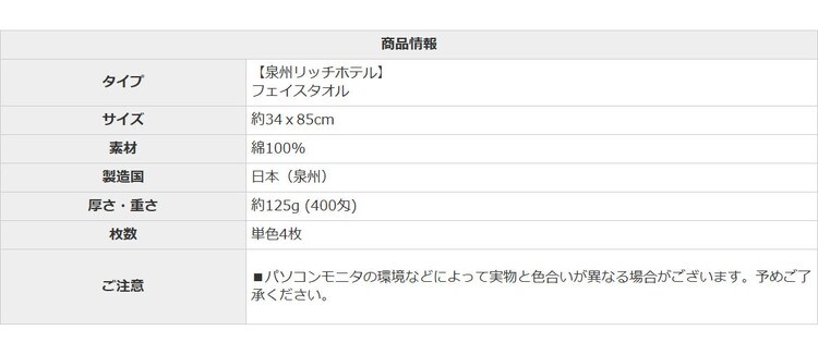 リッチホテルフェイスタオル4枚 日本製 フェイスタオル 4枚セット 厚手 全10色 ホテル仕様 34×85cm タオル 泉州タオル 吸水性抜群 おしゃれ ロングパイル リッチホテル まとめ買い【送料無料】