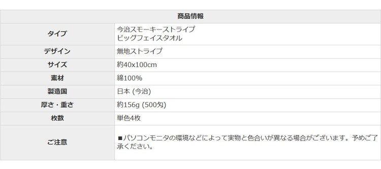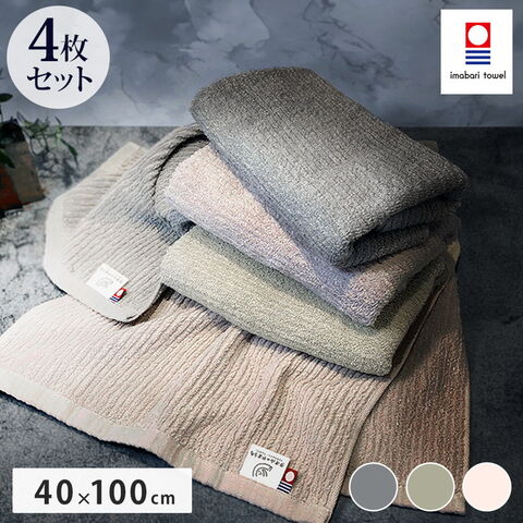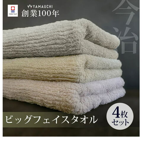 今治タオル ビッグフェイスタオル 4枚 中厚 40×100cm 綿100% 日本製 今治タオル スポーツタオル バスタオル 小さめ 無地 吸水 高品質 色落ち・毛羽落ちしにくい スモーキーストライプ【送料無料】