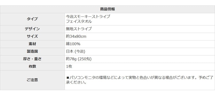 スモーキーストライプフェイスタオル1枚 今治タオル フェイスタオル 単品 薄手 34×80cm 綿100% 日本製 今治タオル フェイスタオル 無地 吸水 高品質 色落ち 毛羽落ちしにくい スモーキーストライプ【送料無料】