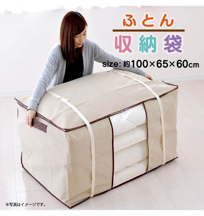 布団収納ふくろ 約100×65×60cm 2本ベルト付き サイド取っ手付き ネーム入れ付 ダブルファスナー 出し入れ楽々【ポイント10倍】 【送料無料】
