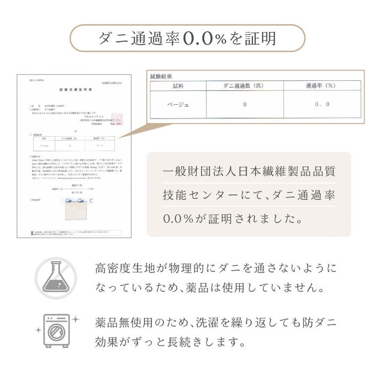 ダニが通過できない高密度の生地 薬剤を使うことなくダニを防ぎます
