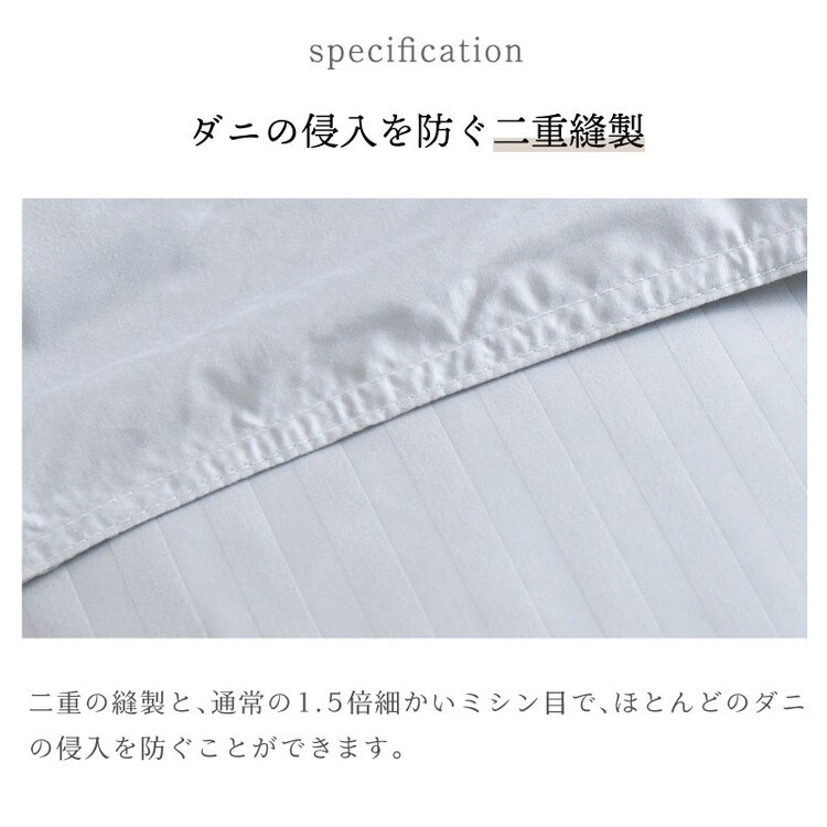 ダニが通過できない、8ヶ所ヒモ付き、吸水速乾、お手入れ簡単、防ダニ効果、静電気防止機能、肌触り、ピーチスキン加工、快適