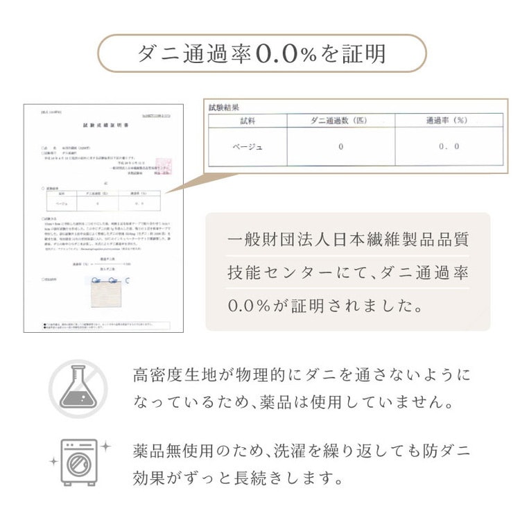 ダニが通過できない高密度の生地 薬剤を使うことなくダニを防ぎます
