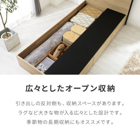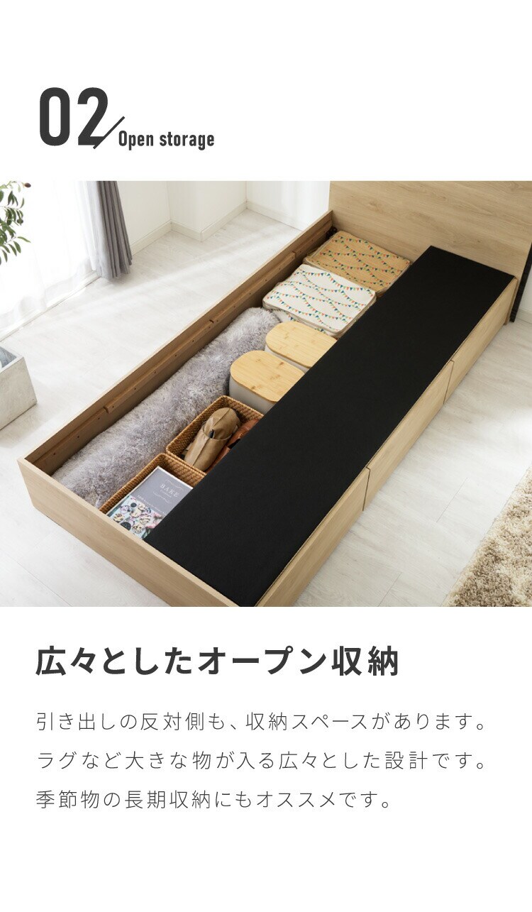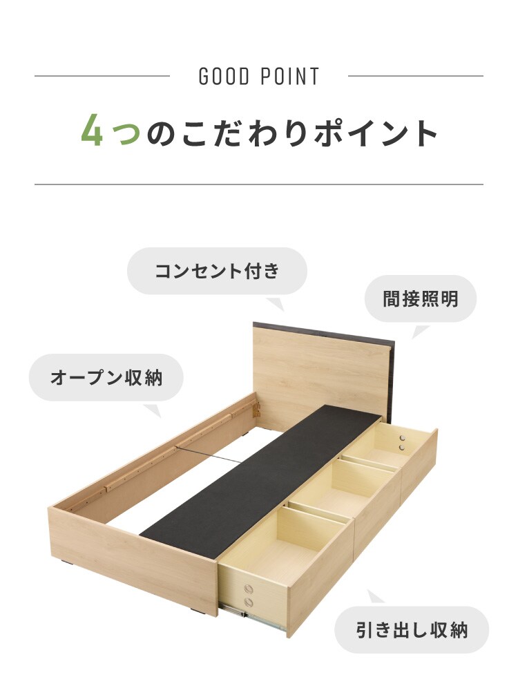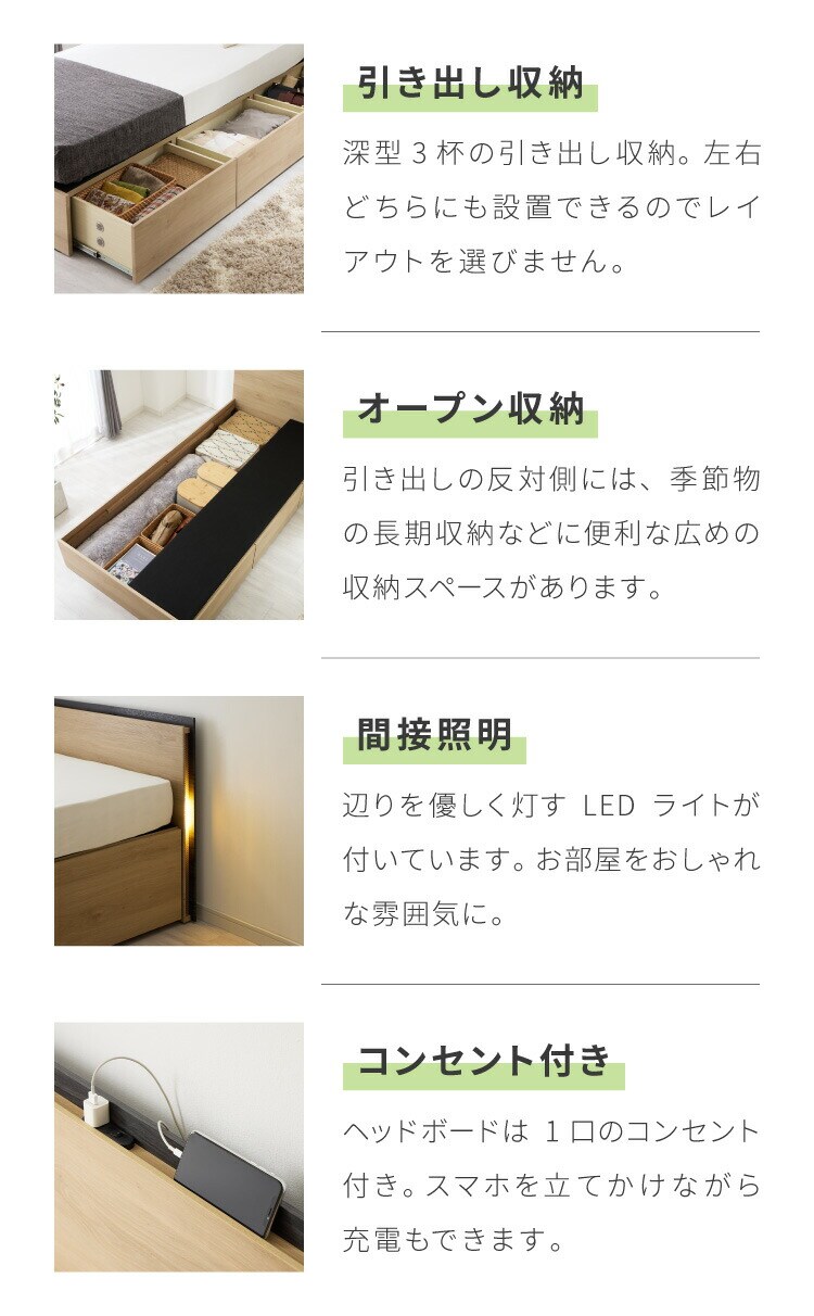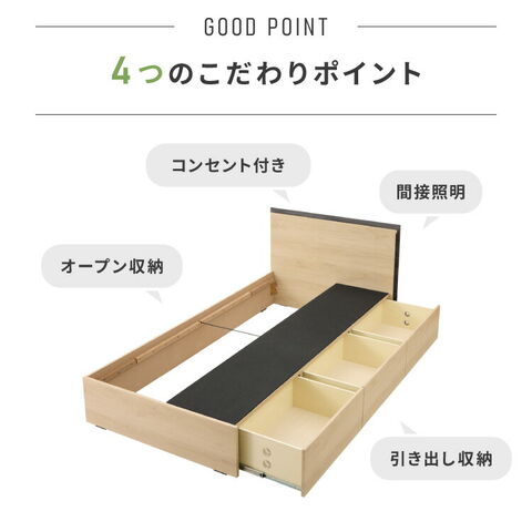 収納付きベッドフレーム フレーム単品 ダブルサイズ 幅145cm LEDライト付き コンセント付き 引き出し付き フルオープンレール仕様 収納 整理整頓 省スペース 有効活用 ベッド 新生活 1人暮らし【送料無料】