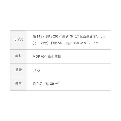 幅145×奥行201×高さ76(床板面高さ27)cm