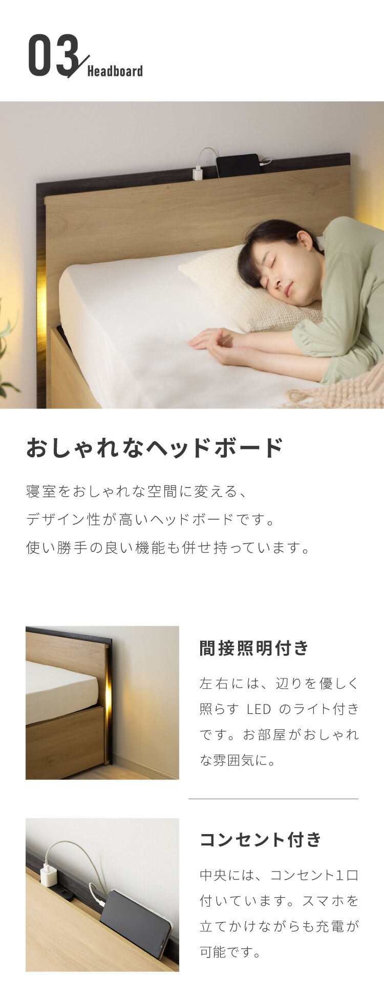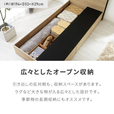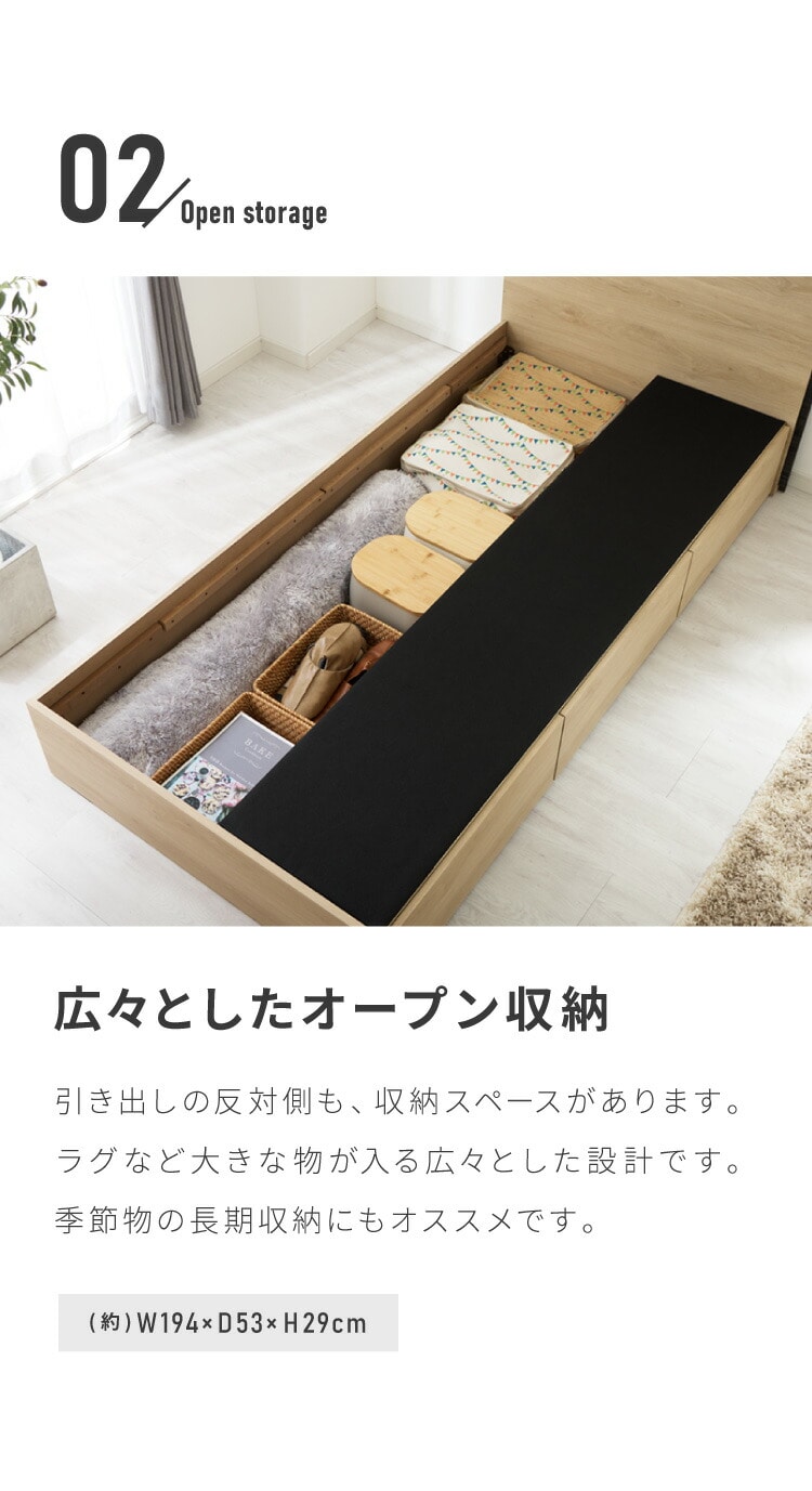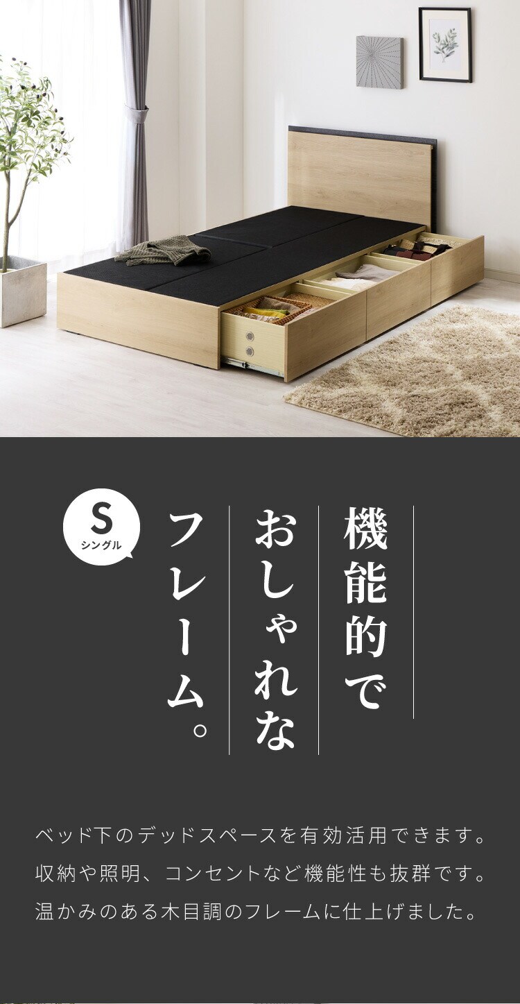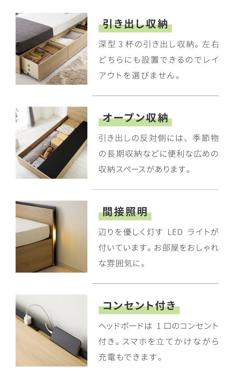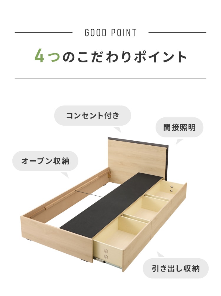 収納付きベッドフレーム フレーム単品 シングルサイズ 幅102cm LEDライト付き コンセント付き 引き出し付き フルオープンレール仕様 収納 整理整頓 省スペース 有効活用 ベッド 新生活 1人暮らし【送料無料】
