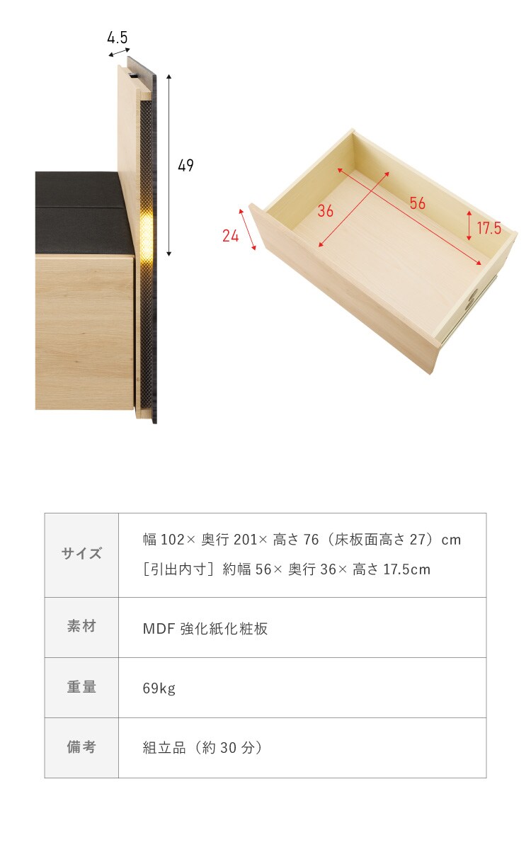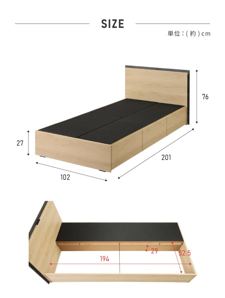 幅102×奥行201×高さ76(床板面高さ27)cm