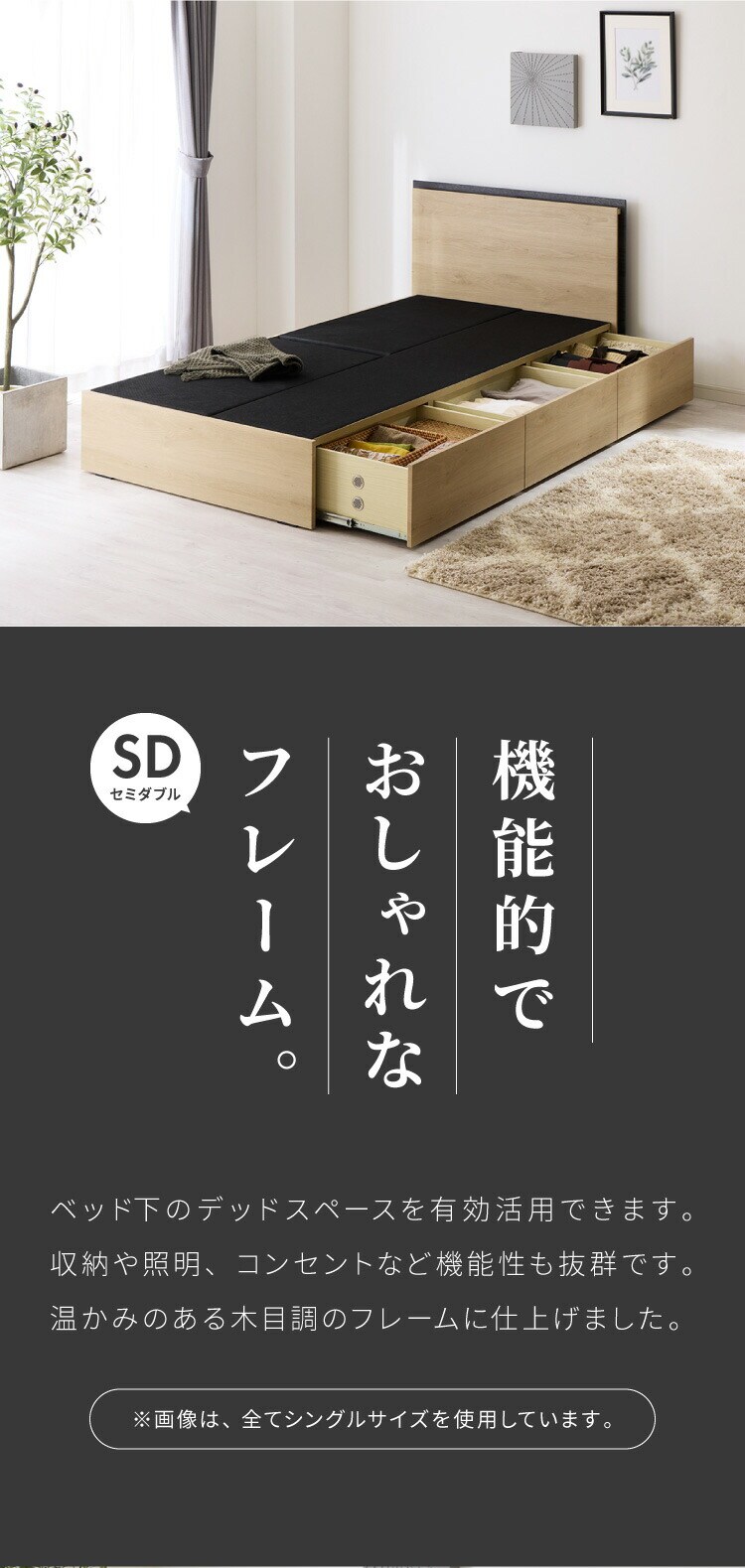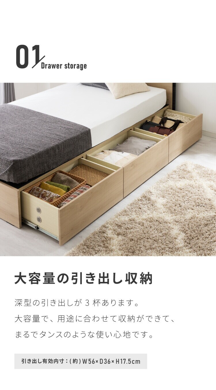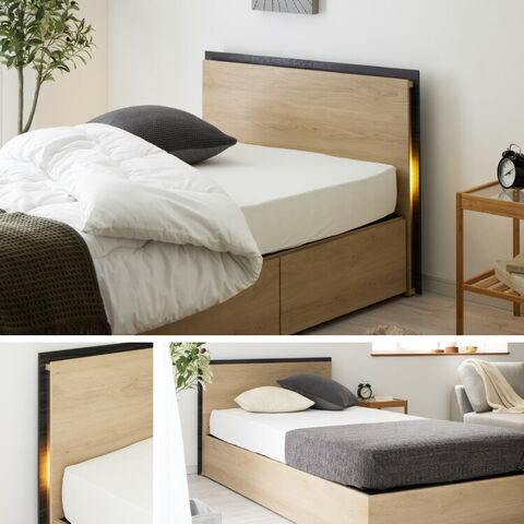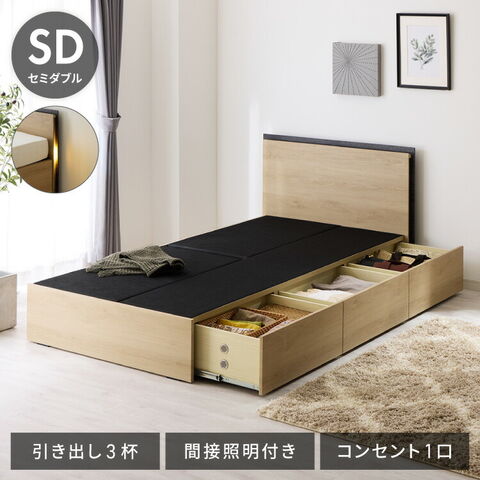 収納付きベッドフレーム フレーム単品 セミダブルサイズ 幅125cm LEDライト付き コンセント付き 引き出し付き フルオープンレール仕様 収納 整理整頓 省スペース 有効活用 ベッド 新生活 1人暮らし【送料無料】