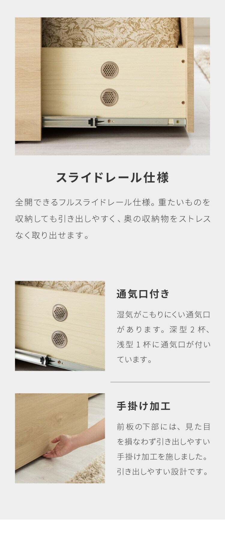 ・引出しは奥まで引出せるフルオープンレール仕様