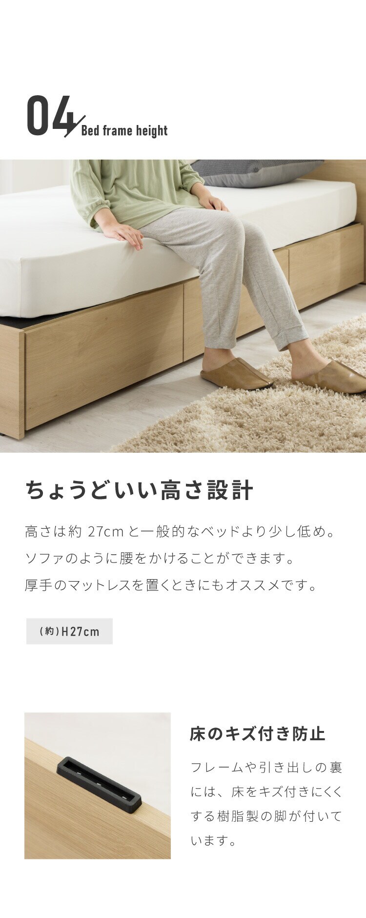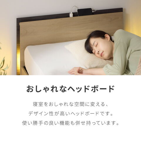 ・ヘッドボード側面にLEDライト付き