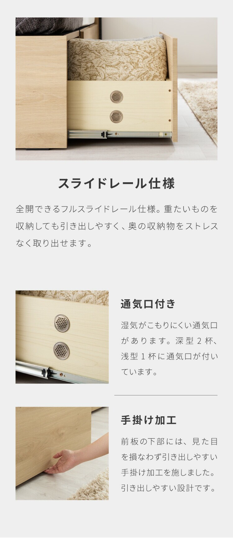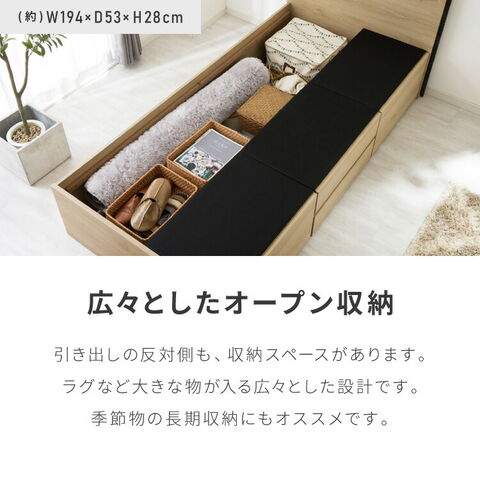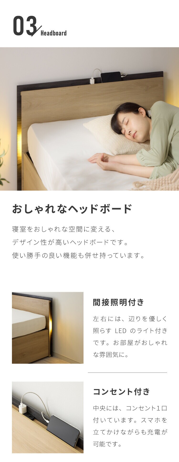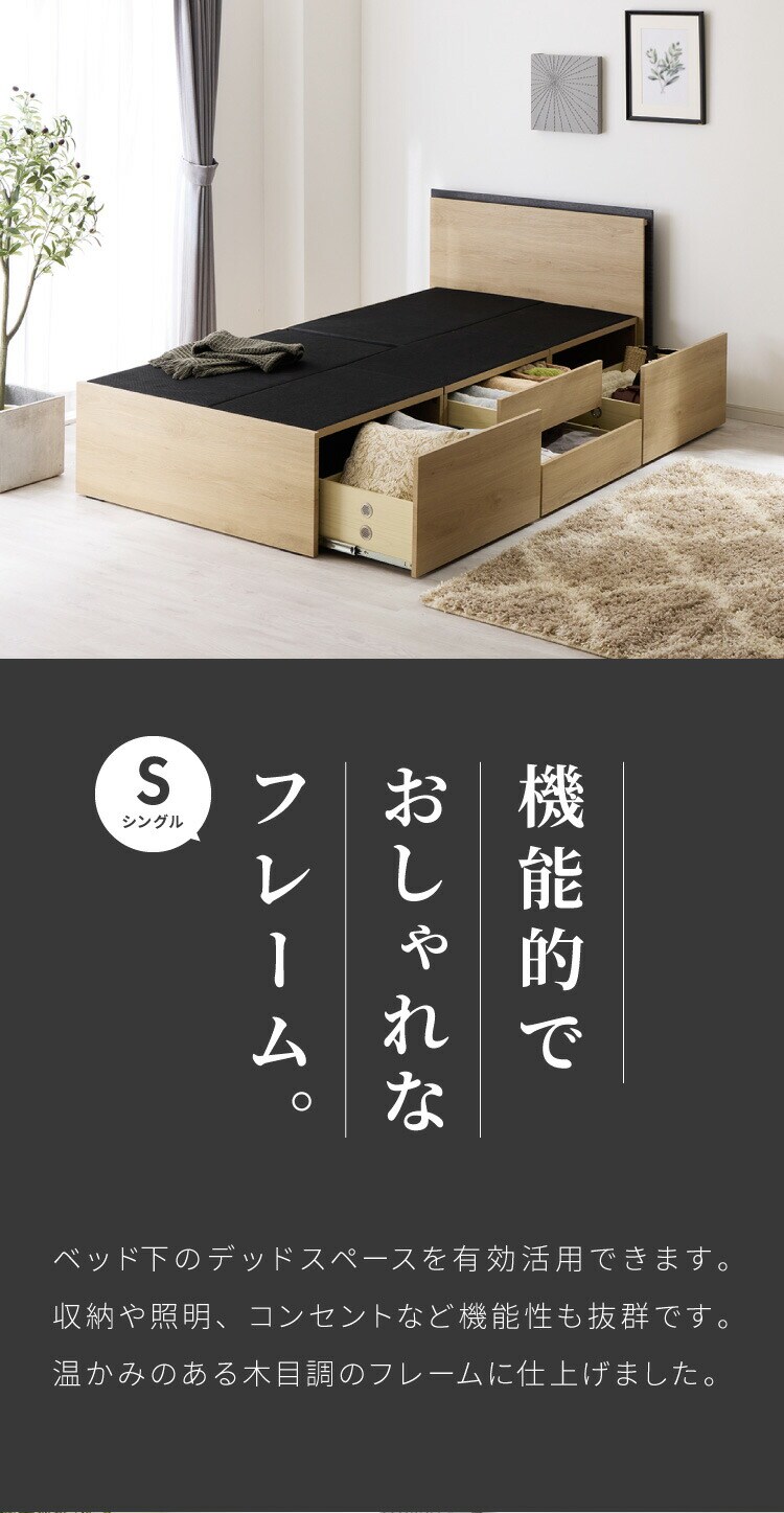 チェストベッド フレーム単品 シングルサイズ 幅102cm LEDライト付き コンセント付き 引き出し付き フルオープンレール仕様 収納 整理整頓 省スペース 有効活用 ベッド 新生活 1人暮らし【送料無料】